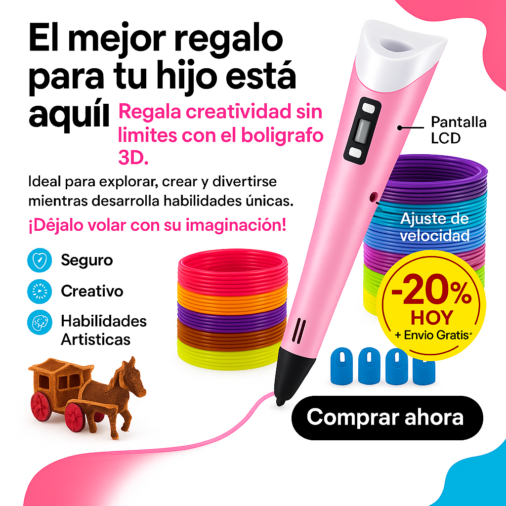 🎨 Sorprende a tu hijo con el regalo más innovador y divertido: nuestro bolígrafo 3D, diseñado para que pueda crear obras de arte únicas y llenar de imaginación sus horas de juego.